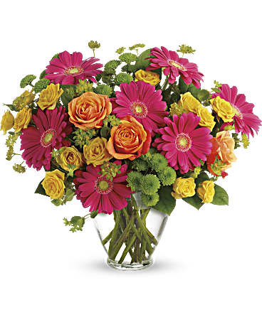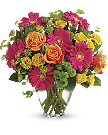 Hot fun in the summertime is here, and it's flowerific to be sure! This beautiful bouquet brings together a rainbow of the season's brightest blossoms.