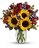 Pure happiness is what this pretty bouquet delivers - whether you're sending it for a fall birthday, Thanksgiving, thank you, or simply just because. Surely, no one can be in the presence of something so inherently happy and not smile.