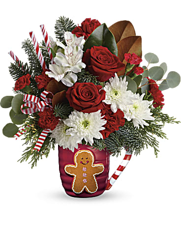 This charming winter sips mug is both practical and festive. Filled with flowers or without, the Teleflora exclusive is sure to become a holiday favorite in the kitchen for years to come. FDA-approved to safely serve and store food.