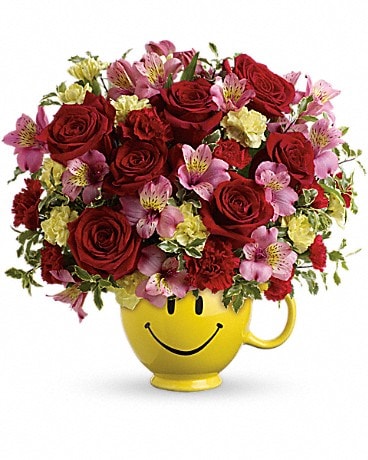 This charming ceramic mug, one of Teleflora's exclusive gift containers, is great for morning coffee - and also makes a cheerful candy dish.