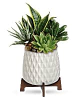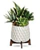 Available exclusively from Teleflora, this glazed ceramic pot with semi-gloss finish and wooden stand will be the perfect home or office décor piece for years to come.