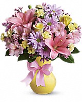 Created for Teleflora's exclusive Flowers-in-a-Gift collection, this cheerful yellow vase will be a favorite for all kinds of bright bouquets.