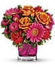 This brightly colored, contemporary cube vase was created for Teleflora's exclusive Flowers-in-a-Gift collection. It will be a favorite for years to come.