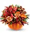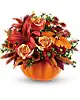 This beautiful hand-painted ceramic pumpkin is from Teleflora's exclusive Flowers-in-a-Gift collection. Filled with flowers or used as a charming candy dish or display piece, it will be a treasured keepsake for years to come.