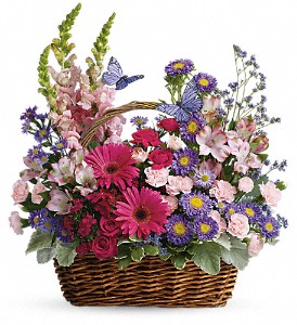 Talk about a bountiful basket! This wicker basket is overflowing with beauty and blossoms. It's no wonder two pretty butterflies have made this basket their home.