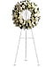 A ring of fragrant, bright white blossoms will create a serene display at any funeral or wake. This classic wreath is delivered on an easel, and is a thoughtful expression of sympathy and admiration.