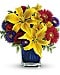 Martinique, St. Maarten, any tropical paradise is the perfect setting for this explosively colorful bouquet in a chic blue contemporary cube vase. Can't go just now? Bring the island home.