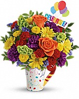 Send best wishes to friends, family and loved ones with this cheerful celebration mug. Available exclusively from Teleflora. FDA-approved.