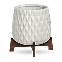 Available exclusively from Teleflora, this glazed ceramic pot with semi-gloss finish and wooden stand will be the perfect home or office décor piece for years to come.